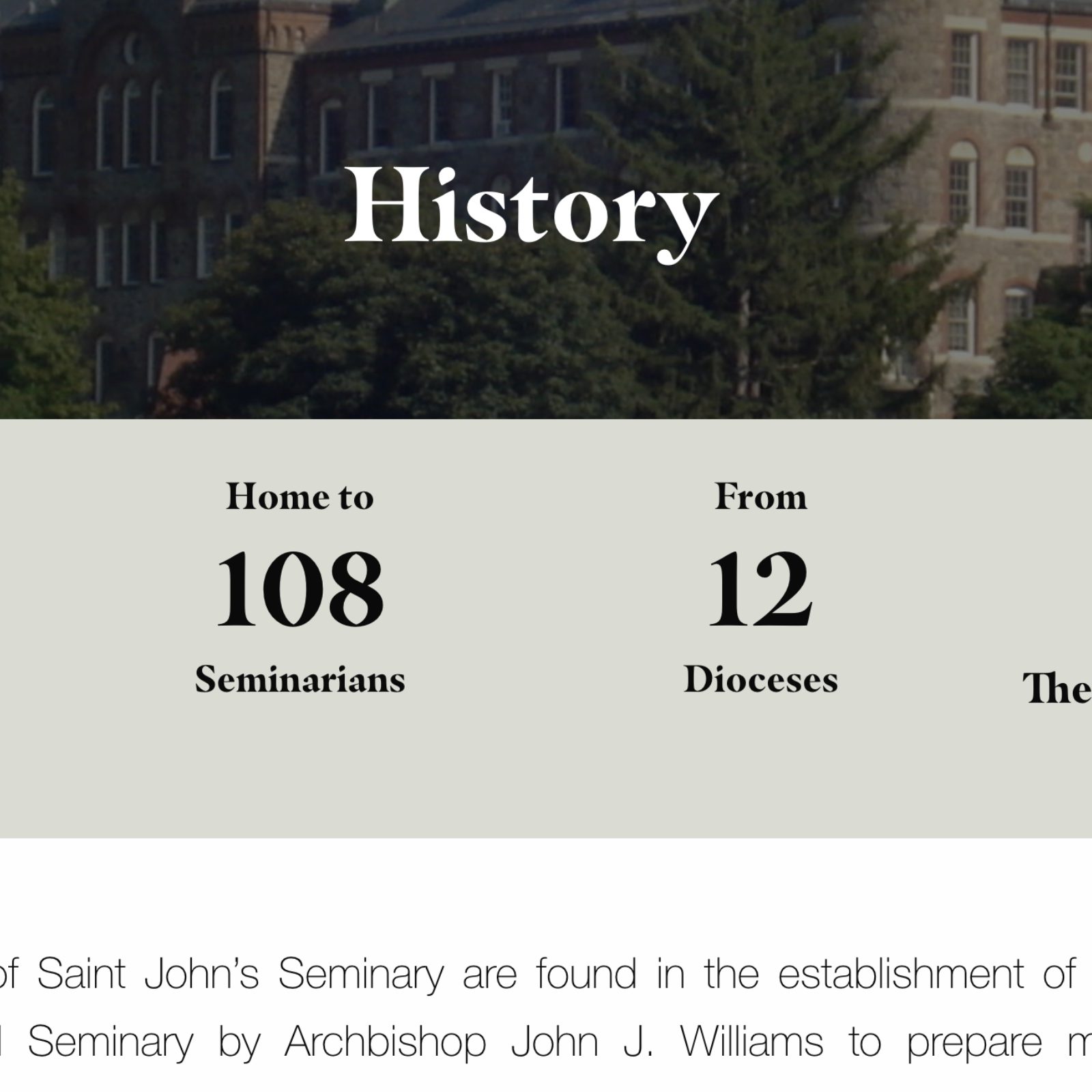St. John's Seminary in Boston engaged us to create a brand new website for them – something fresh and modern but which kept continuity with their history and their role forming priests to serve the Church. At the same time, we also refreshed and expanded their identity system, creating a new version of their seal and a less formal logo variant for use on the web.